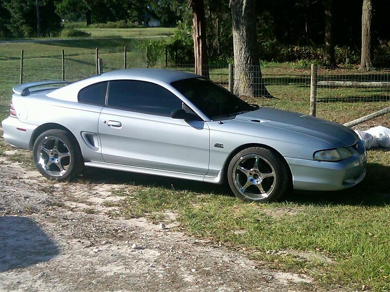 1995 mustang gt, 5.0 polished upper and lower intakes, big throttle body, billet underdrive pulleys,cold air kit,h pipe with flowmasters, strut tower brace,lowering springs,tubular control arms,short throw shifter,3.73 gears,chrome cobra R rims, new staggered nitto 555 tires, silver in color,grey cloth interior,car is very clean. would consider trading for a nice race car or pro truck email me what you have,turn key or top notch roller.