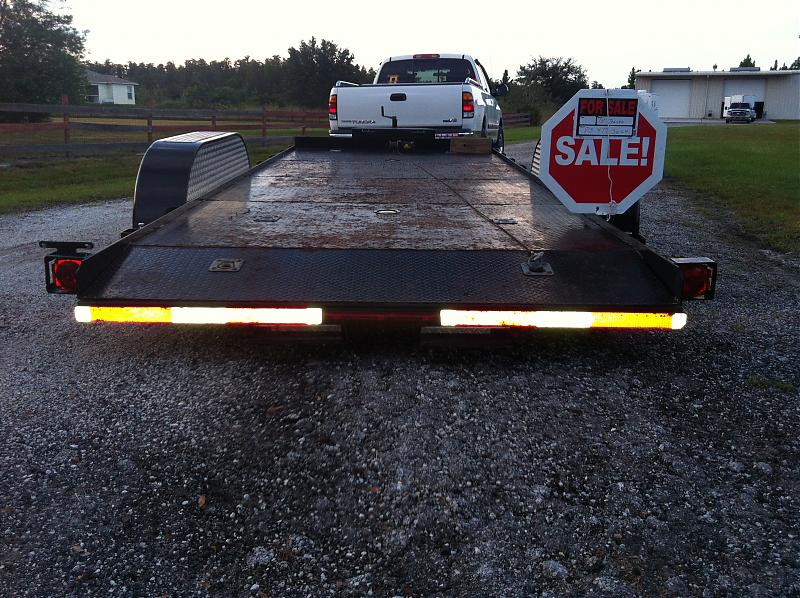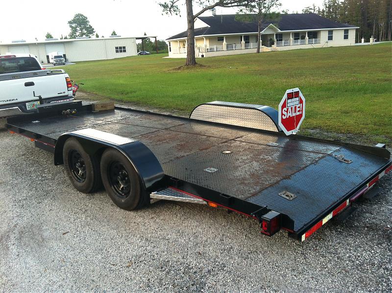 Bought this trailer new and it has only been used maybe five times. It is a true length 18ft floor, has hide a way ramps, it is 81 and 3/4 between fenders(plenty wide enough for late models), 4 inch drop axles, 2 lights in the floor to make nighttime tying down easier, diamond plate steps on both sides, 6 in floor tie downs, winch, removable driver side fender, 2 3500 axles, one axle has brakes, 2 inch ball receiver, box on front to haul straps and battery for winch and winch controller, and 4 extra lights down each side and leds across rear center(Christmas tree style at night going down the road). This trailer is as close to new as you will find and has always been covered. It pulls like a dream, the heaviest thing I had on it was one of my modifieds and you would never know it was behind you. Asking 2200 obo. You have to see it to appreciate it. You can email me at troywrobinson@aol.com, or call or text 813-368-5554 anytime with any questions, more pics, or if you want to come look at it. Located in Wesley Chapel Fl. Thanks for looking and see you at the races.