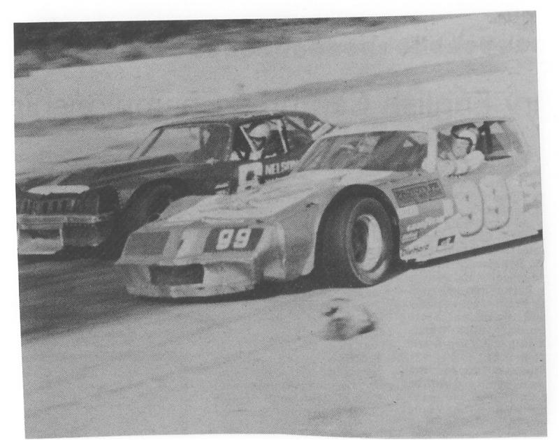 - Dick Trickle on his way to finishing second passing Bob Pennington…